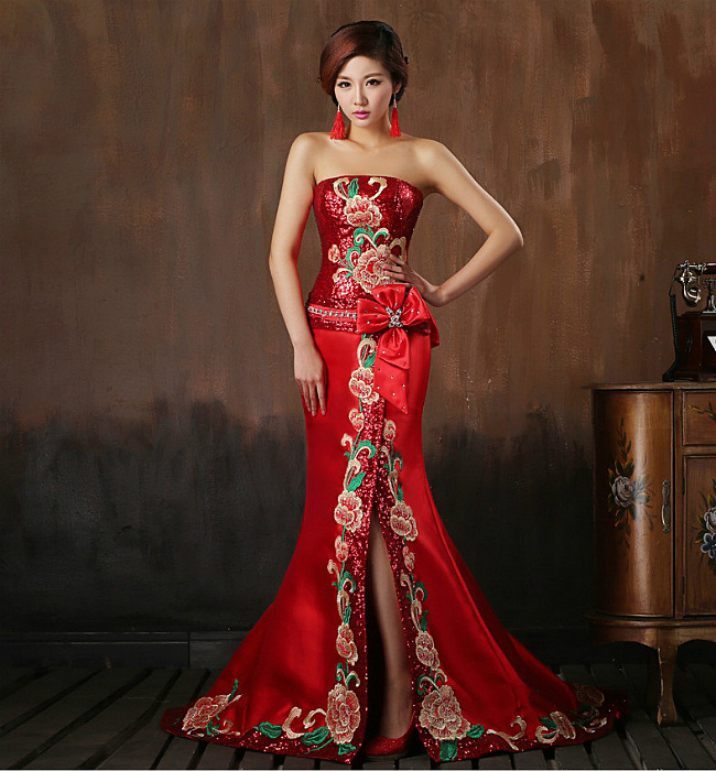 中式婚纱致力于传承华夏文明,在传统文化与现代服饰间寻求契合点,力求“融汇古今,贯通中西”。中式婚纱并不是元素的堆砌,而是通过对传统文化的理解和提炼,将现代元素与传统元素相结合,以现代人的审美需求来打造富有传统韵味的婚纱,让传统艺术在当今社会得以体现。执著地使这些千古绝艺得以重现的婚纱,这就是中式婚纱,今天爱在东莞结婚网的小编就给大家带来一组中式婚纱,高贵性感端庄结一体,给你最红的视觉冲击!