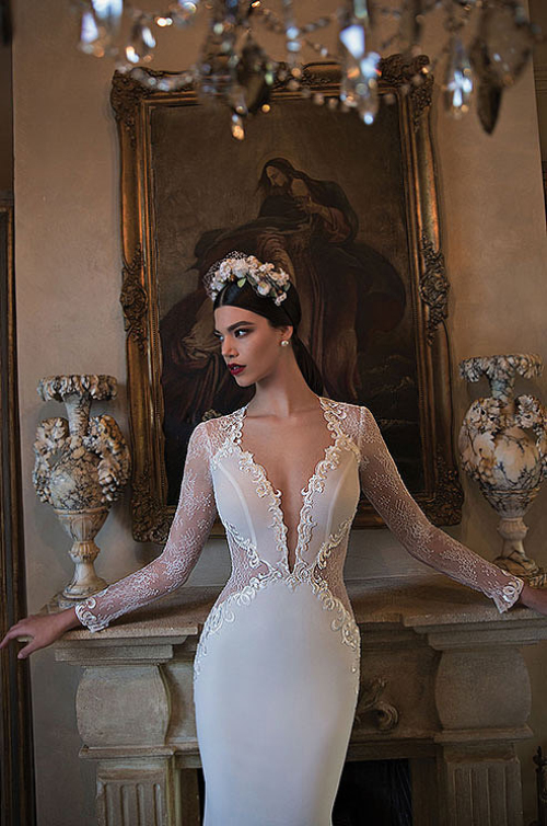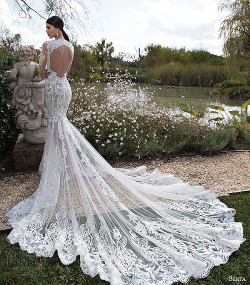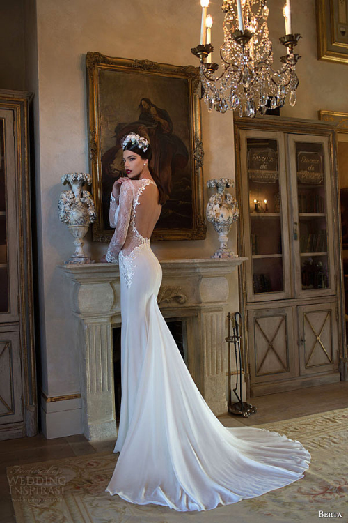 今天爱在东莞结婚网小编为大家带来婚纱品牌的赏析,来自以色列的著名个人婚纱品牌——Berta。Berta婚纱以精美设计著称,这次为大家介绍的是Berta 2015婚纱经典系列,洁白珍珠配合华丽的蕾丝,剪裁上采用复古长袖设计,大型的伞型裙摆营造了华美的画面感。重点来了!这季的婚纱重点是非常性感!V领露背,搭配超长鱼尾,完全是对性感的完美诠释!