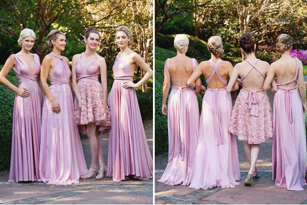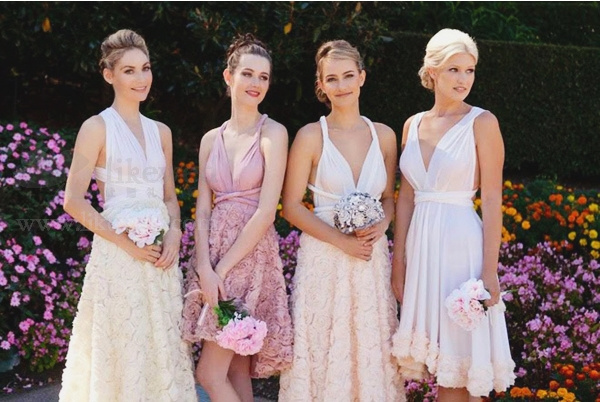 婚礼中,新娘的姐妹团也是一道值得期待的风景,今天爱在东莞结婚网的小编给大家带来一系列七彩缤纷,各有特点的姐妹礼服。同色不同款,同款不同颜色,或是相同图案不同设计等等,都会让人眼前一亮!也可以根据不同主题婚礼来设计不同类型的礼服哦!在这个讲求创意的时代,与众不同才是王道!下面就来欣赏一下小编为大家收集的优雅华丽颜色鲜艳的伴娘礼服吧!