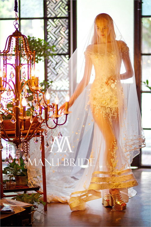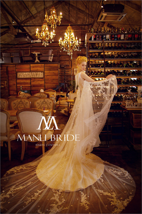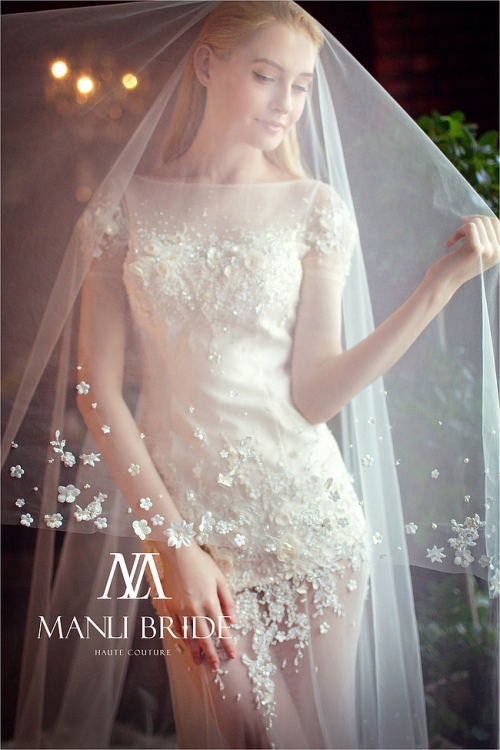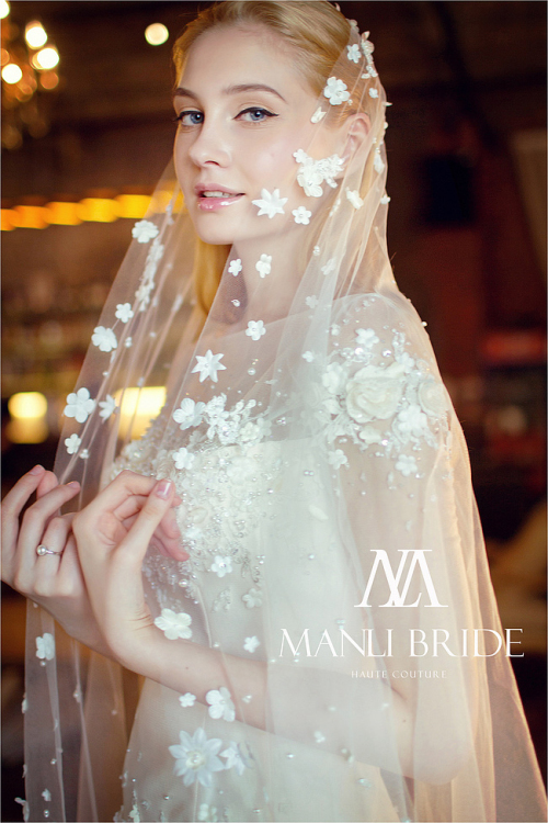 大家都有听过睡公主这个故事吧!今天爱在东莞结婚网小编为大家带来MANLI BRIDE婚纱品牌的睡公主系列婚纱。MANLI BRIDE以睡公主的故事作为灵感,设计出梦幻婚纱系列。这系列婚纱的最大特色就是头纱,加大型号的头纱能把整个身子罩住,印上各种花儿的图案,显得格外唯美。而且该系列更分为黑白两种风格,白色高雅优美,黑色神秘诱人,尽显公主的不同风格!