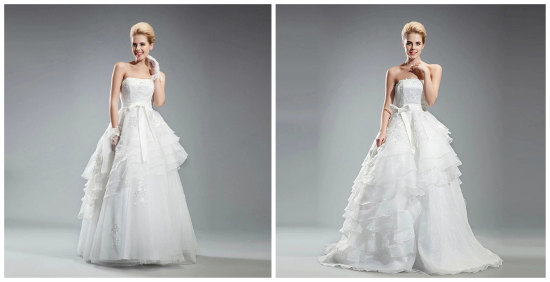 婚纱的设计现在越来越多元化,也让更多新娘子有更多的选择,但有时候经典是无法复制和替代的,比如A字裙婚纱。A字裙婚纱可以说是婚纱的始祖,从欧洲中世纪的女式服装演变过来,由于上身窄,下半身宽松,形状像英文字母A,所以被大众称为A字裙婚纱。这类裙子在古时候的欧洲只有公主和贵族能穿,所以非常有气势和造型感十足,特点是能够突显新娘的腰身和臀部曲线。由于版型简单,所以很多婚纱设计师可以将不同的元素加入A字裙婚纱中,但不变是它经典的A字形状。