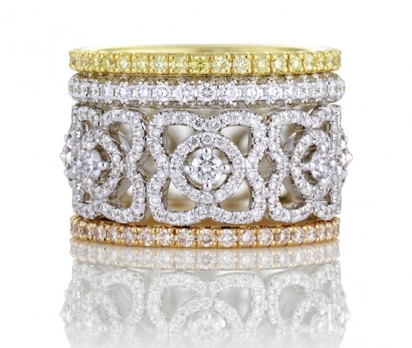 DE BEERS Stacks of Sparkle系列叠加戒环,犹如温暖耀眼的晨曦光芒,个性化的搭配彰显不同的气质。玫瑰金、黄金及白金底座的各系列戒环细节出众,柔美华丽与精湛切工的戴比尔斯精选钻石相得益彰。该系列不仅作为结婚饰品更可以在生活根据需要随意搭配,打造专属你的珠宝设计。
