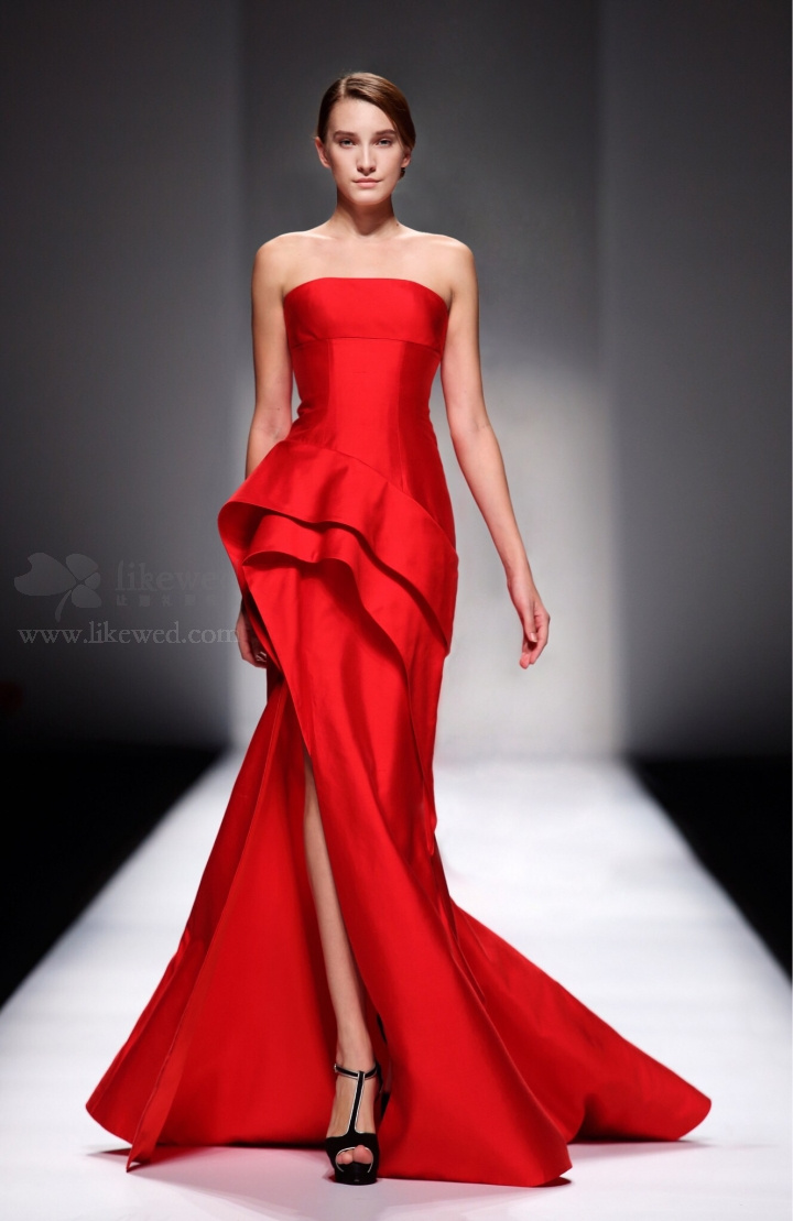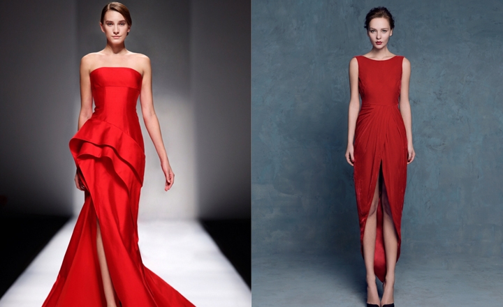 红色,代表着热情如火,在婚宴上意见红色礼服必然让你焕然一新,简约的设计不会令你喧宾夺主,尊重场合又能突出自身气质。红色礼服跟小黑裙一样,每个女人衣柜里都要必备一件!今天爱在东莞结婚网的小编给大家带来一系列红色的礼服,没有图案,没有装饰,只需要有好的剪裁,让你低调却明艳动人!