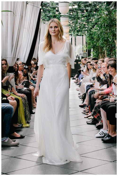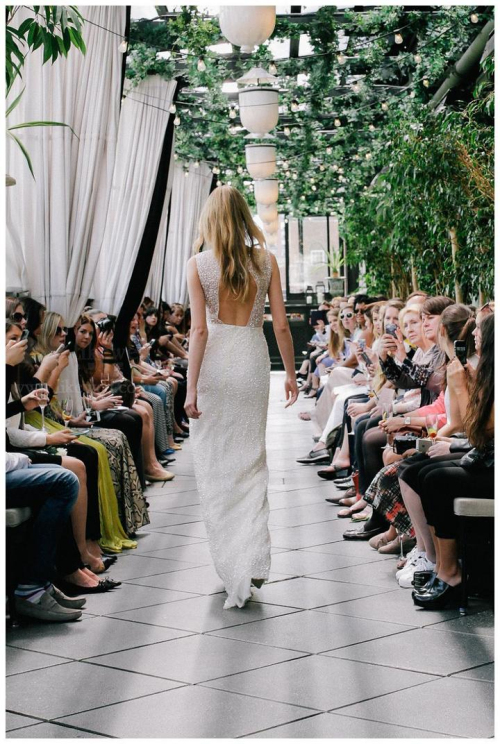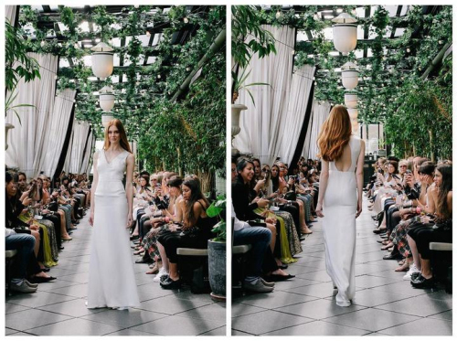 Sarah Seven一直以简洁优雅的设计路线著称,这季的婚纱也不另外,都是纯白设计,但每一套都具有自己的设计特色,加上T台特意选在透光强、明亮照人的室内温室花园举行,让每件婚纱都让嘉宾们能清楚看到每个细节,也非常符合本季的绿色主题。
