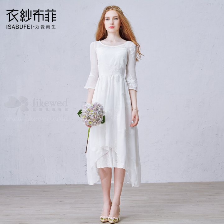 不知道大家是否有看过美剧“欲望都市”的电影版第一部,结局的时候,女主角carrie穿着一套从vintage店淘来的没有品牌的白色连衣裙,牵着她心爱的男人,举办了一个简单的宣誓仪式,就把彼此交给对方。其实想想一切繁华、奢侈的装横、仪式都是如烟花般一闪稍纵,时间、承诺、甜言蜜语才是验证爱情的载体。今天爱在东莞结婚网的小编为大家带来一系列简单,低调,优雅的礼服,适合小教堂,草坪简单仪式的婚礼哦~