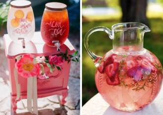 要冰凉又要优雅,那就上冷饮吧!把水果冷饮放在萌萌哒容器里,婚礼颜值分分钟UP,再加点酒精调成鸡尾酒,气氛秒嗨!