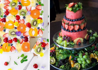 比水果甜品塔更腻害的,还有水果蛋糕!在奶油蛋糕里面加水果只是初级版,终极版可是直接用水果做蛋糕!右下的西瓜裸蛋糕,看着就好夏天的感觉~