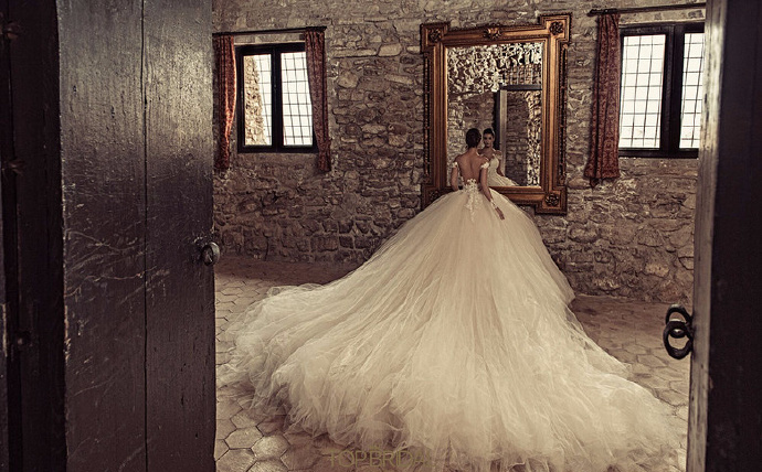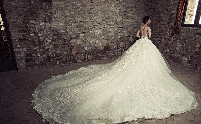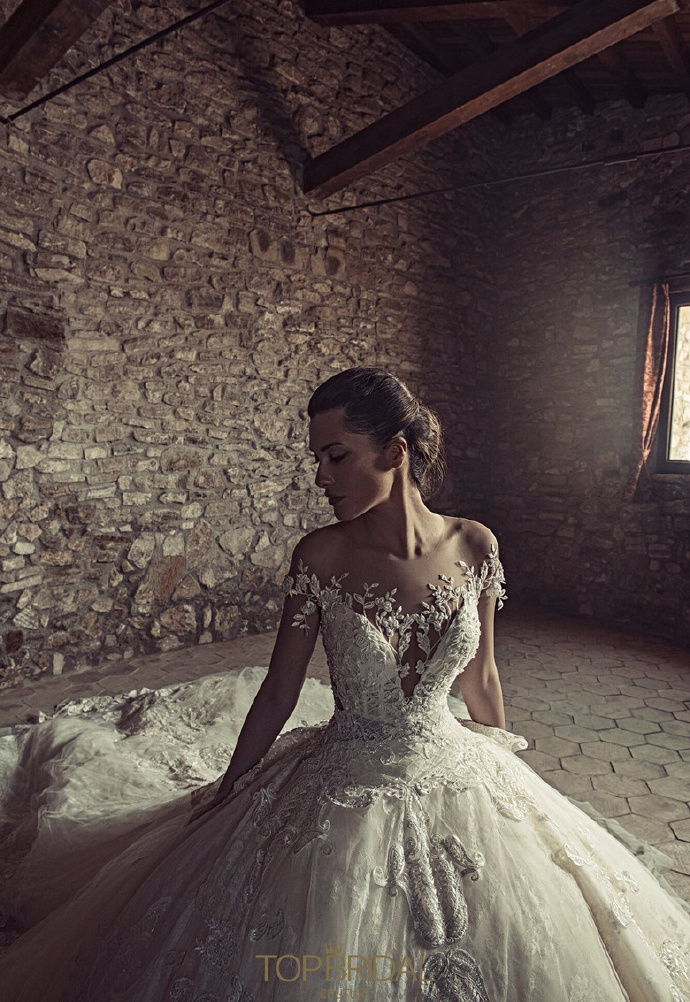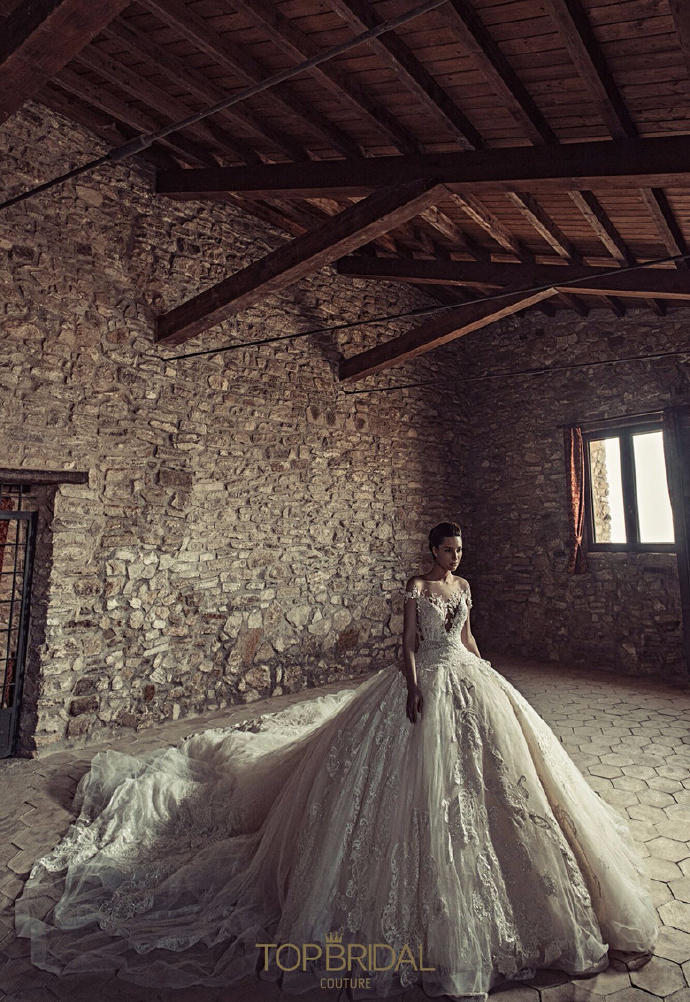保加利亚奢华高定品牌Julia Kontogruni承袭拜占庭皇朝的华丽装饰要素,全线采用百年历史的法国世家Sophie Hallette蕾丝,由正统奥地利施华洛世奇水晶打造,足以让星辰失色,让新娘如钻石般闪耀发光。