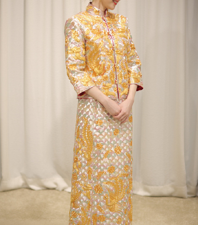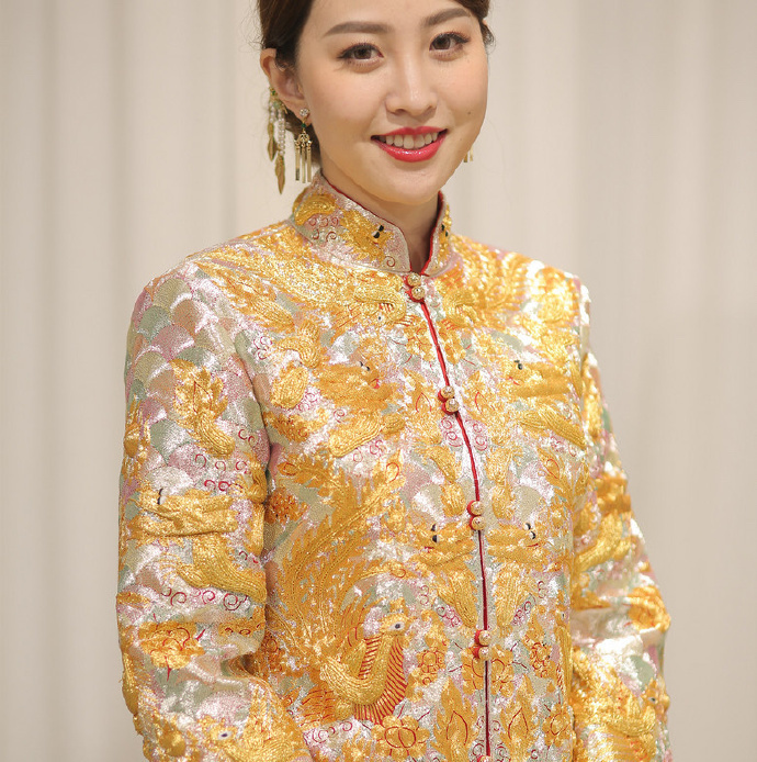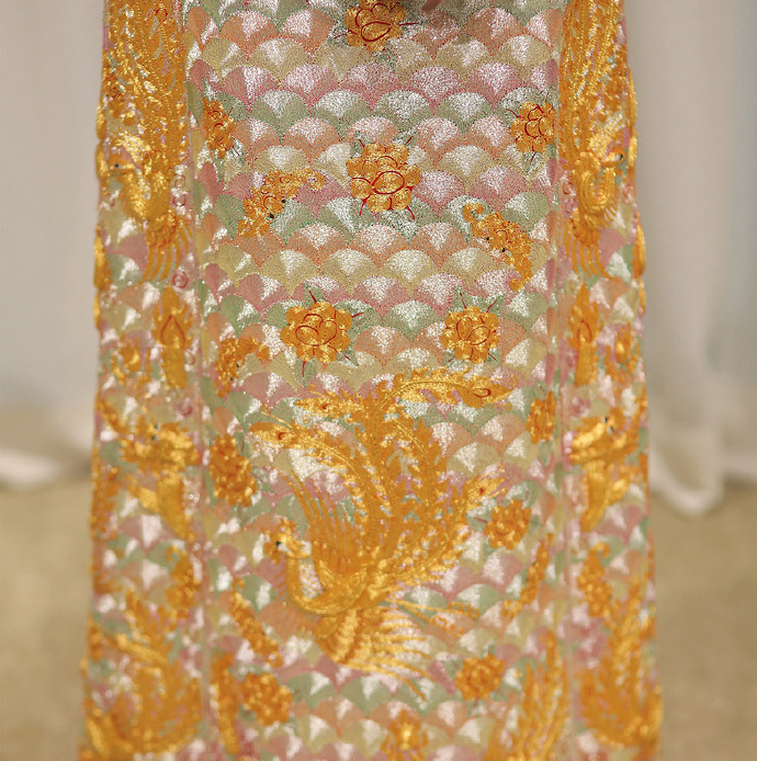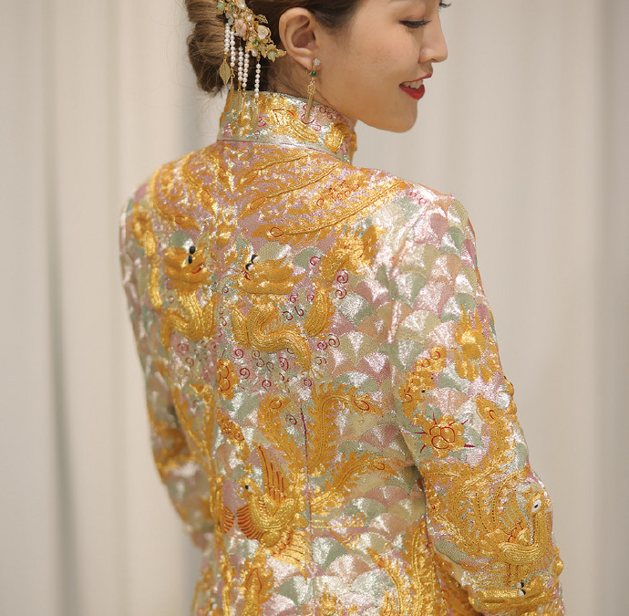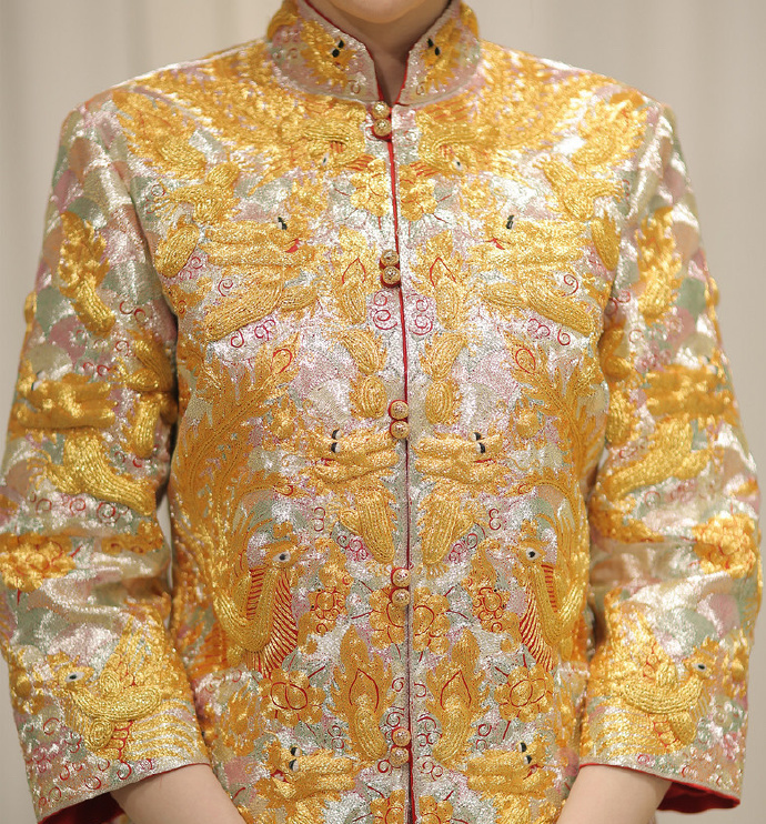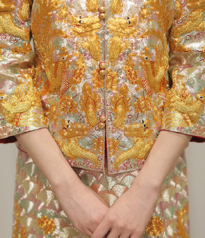 布满金丝的龙凤褂,刺绣独特细腻 。