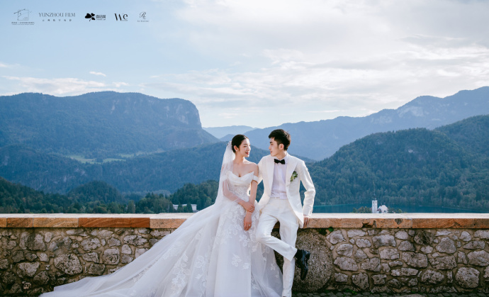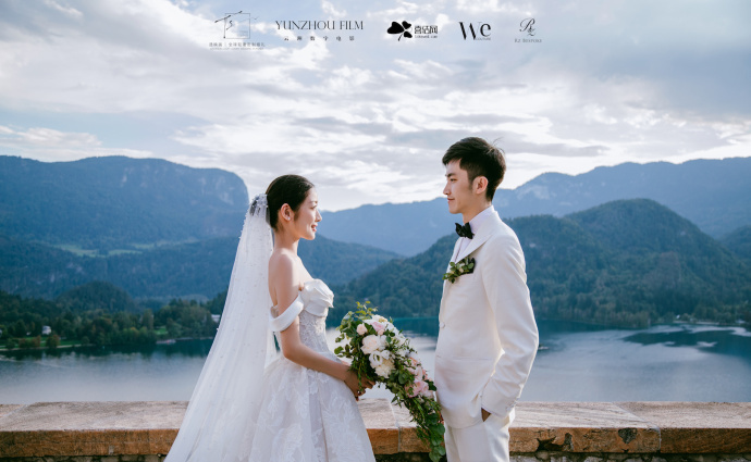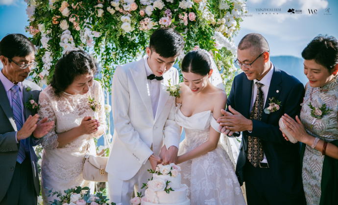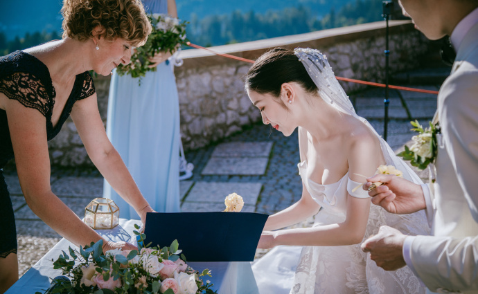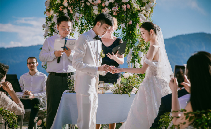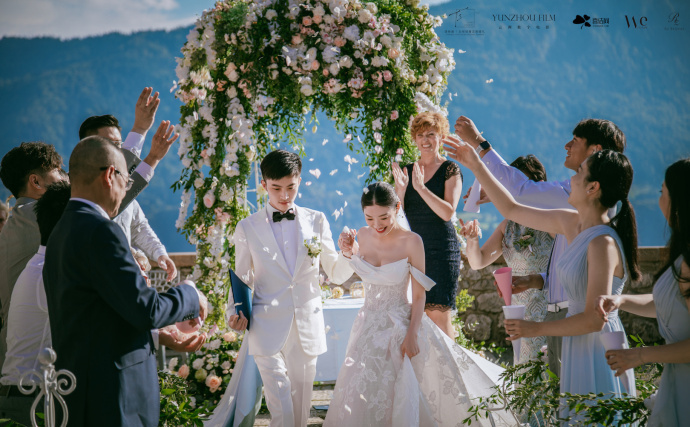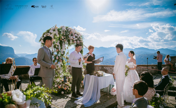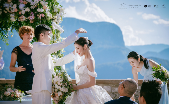 在这个童话般的场景里,两人完成婚礼仪式