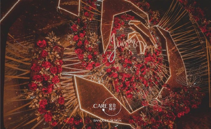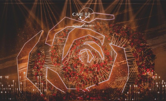 舞台背景是一朵层层叠叠的巨型玫瑰